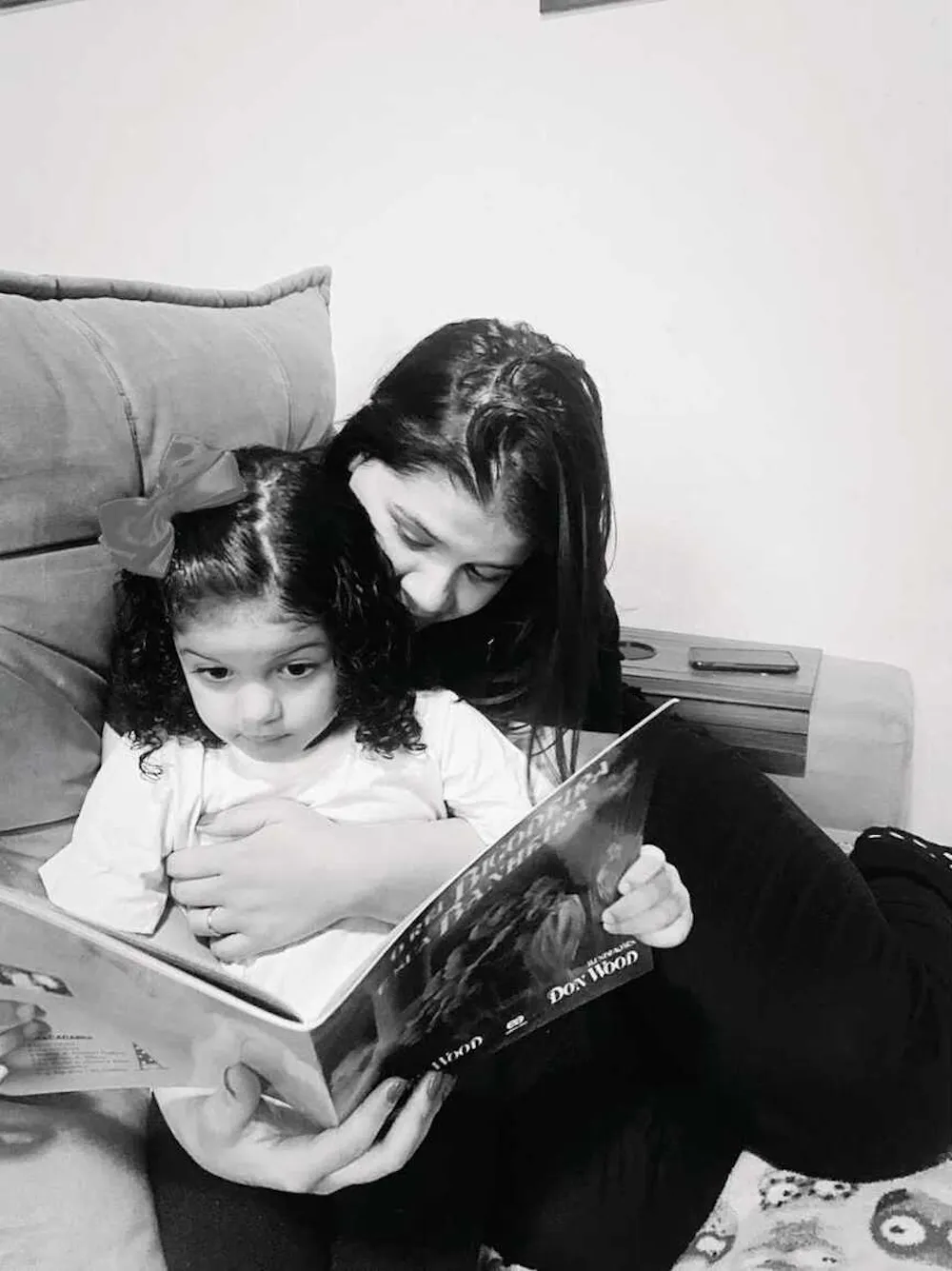 Mas estou muito ocupada, colecionando momentos, guardando memórias. Como essa aí, no meu horário de almoço, há 5 minutos de uma reunião importante, lendo pra ela o mesmo livro com que aprendi a ler, aos 6.