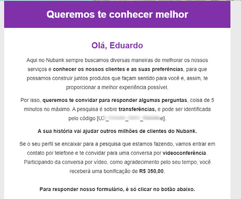 Recebi um e-mail do Nubank, com o seguinte remetente [email protected]