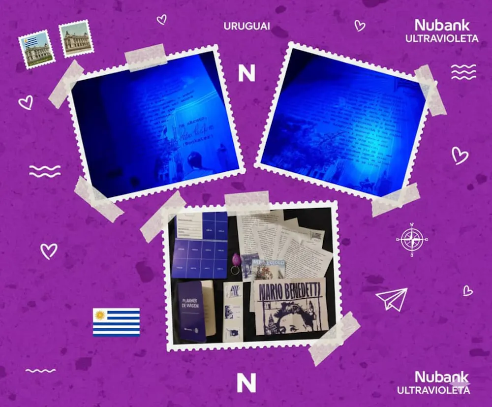 E o mais criativo de tudo: uma pequena lanterna de LED UV! Achei uma sacada fantástica do Nubank, conectando o nome “Ultravioleta” com a experiência de descobrir segredos.