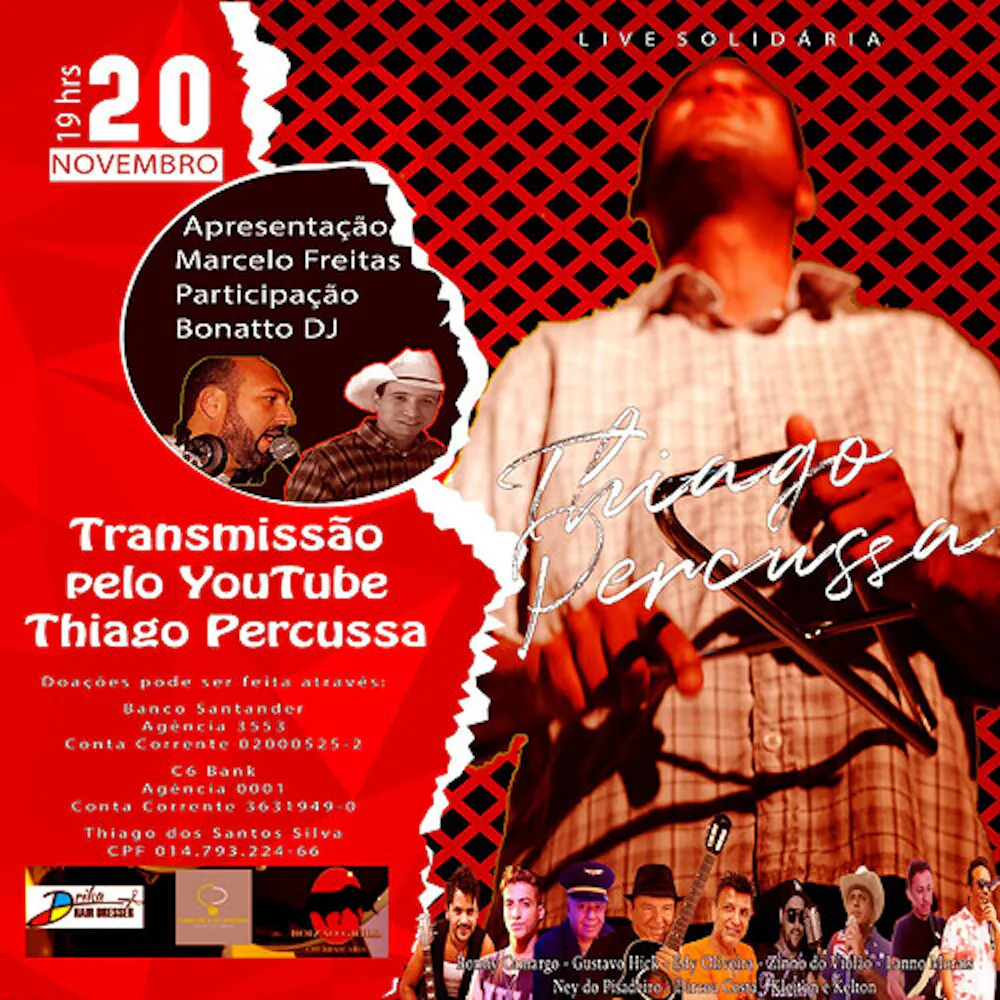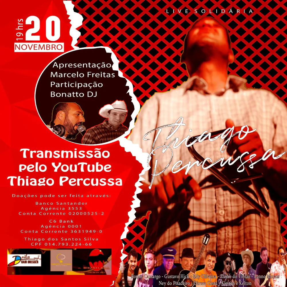 Vim aqui para convidar a todos para a minha live solidária, que ocorrerá no dia 20, às 19:00, transmissão no Facebook e