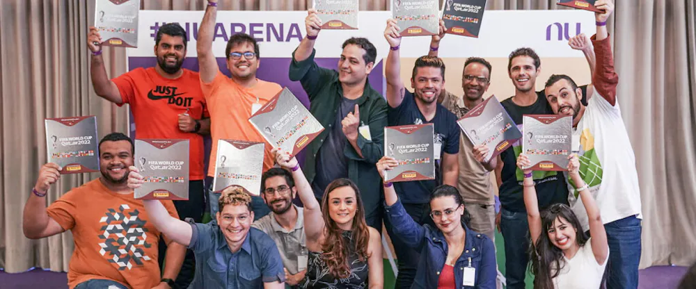 Para comemorar a Copa do Mundo, rolou um evento exclusivo no escritório do Nubank para o pessoal aqui da comunidade, o Nu Arena!