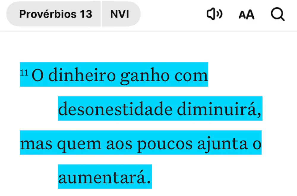 Segundo provérbios 13:11, não é o esbanjador ou o que gasta todo o dinheiro que possui que terá cada vez mais, mas sim aquele que ajunta aos poucos o dinheiro ganho com honestidade.