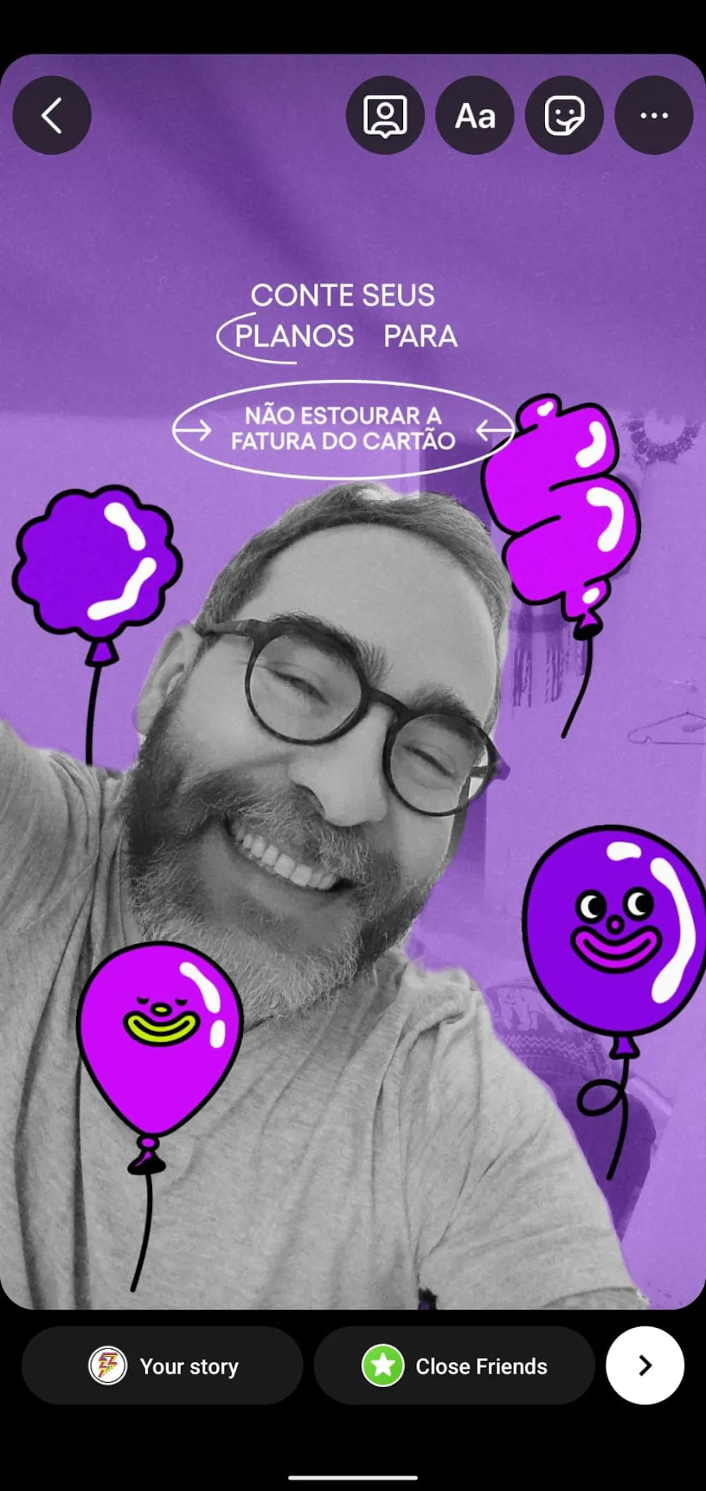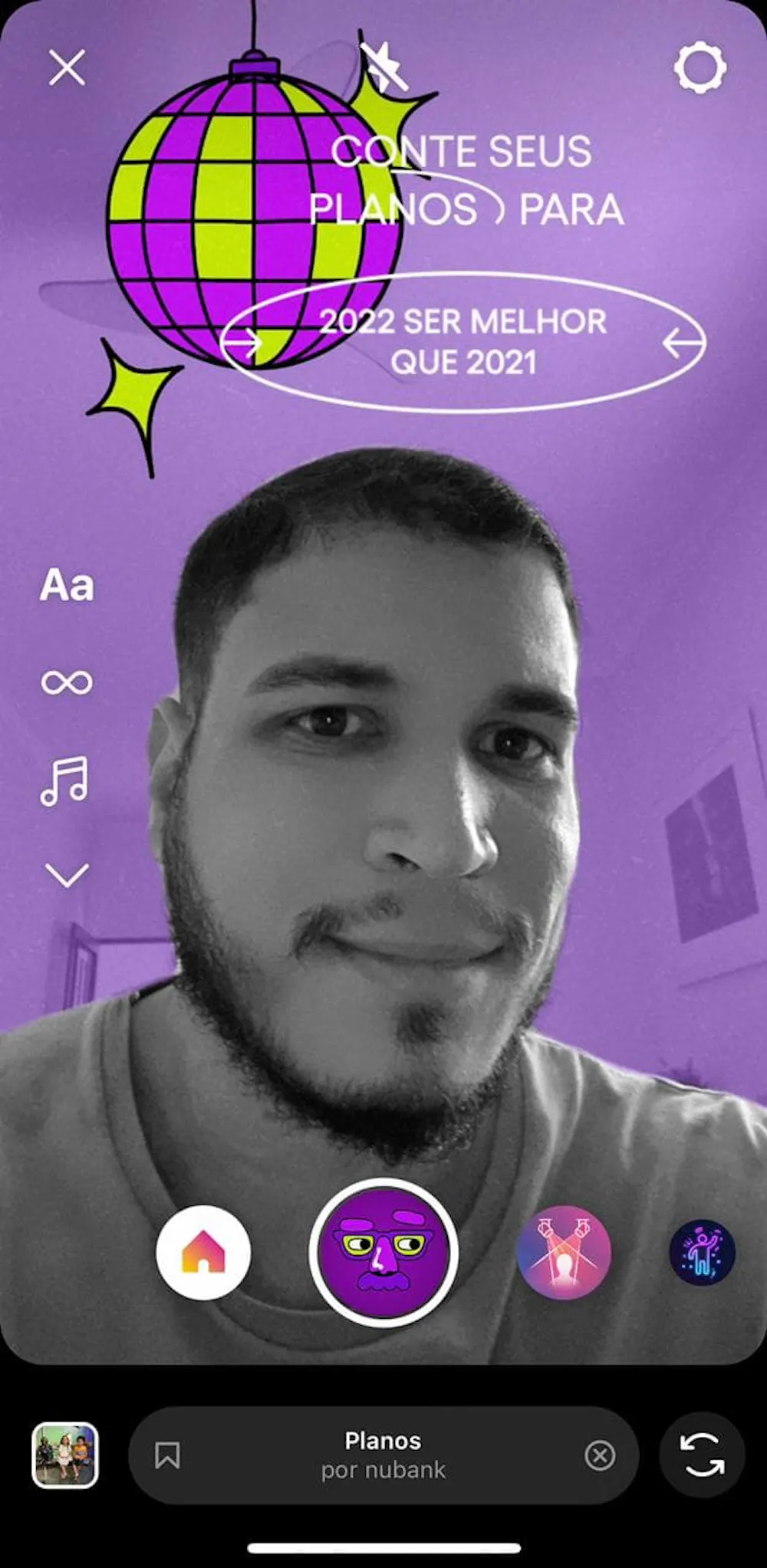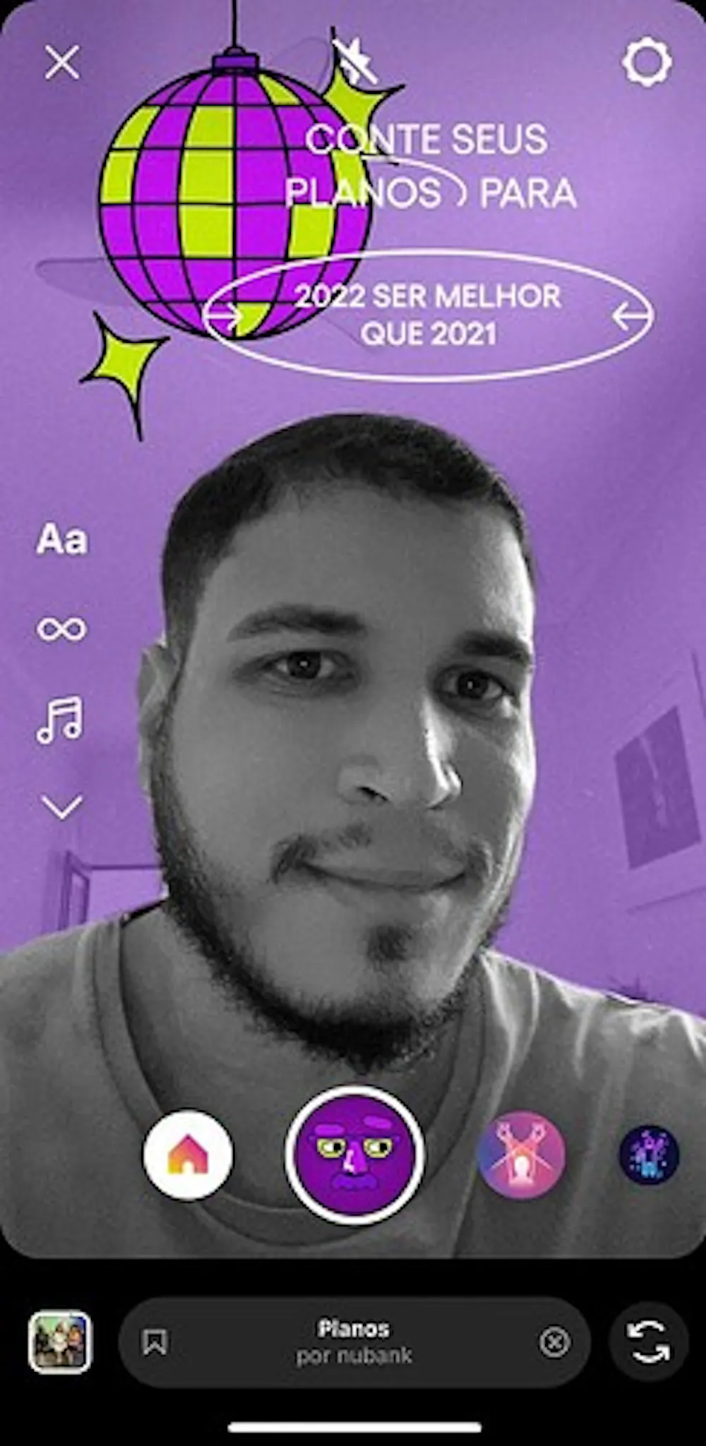 E olha só que legal, o Nubank criou um filtro de Instagram muito divertido (com direito à easter eggs - corre lá) para que vocês compartilhem seus planos sobre os mais diversos assuntos. Nossos Leaders @endydealmeida @Julian_Lopes se jogaram de cabeça nessa produção