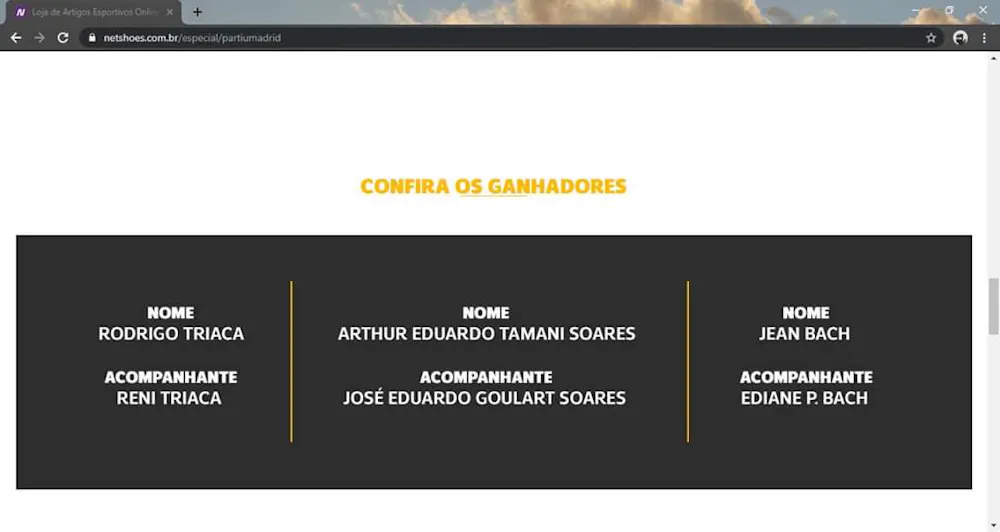 No dia 27/09/19 ocorreu o sorteio mas não divulgaram os nomes, até ai tudo bem, porem no dia 14/10/2019 recebi uma ligação informando que eu era um dos três ganhadores para assistir o jogo do REAL MADRID X PSG