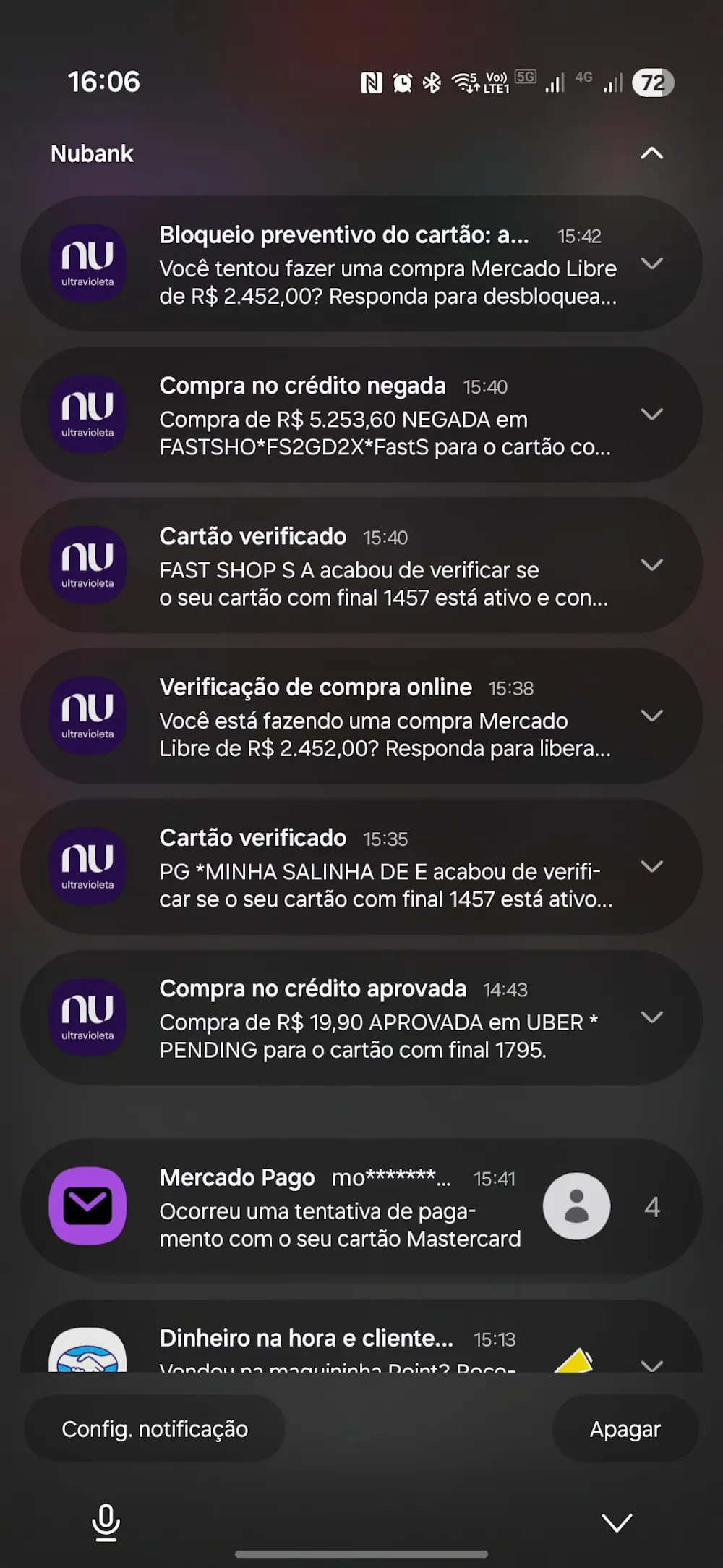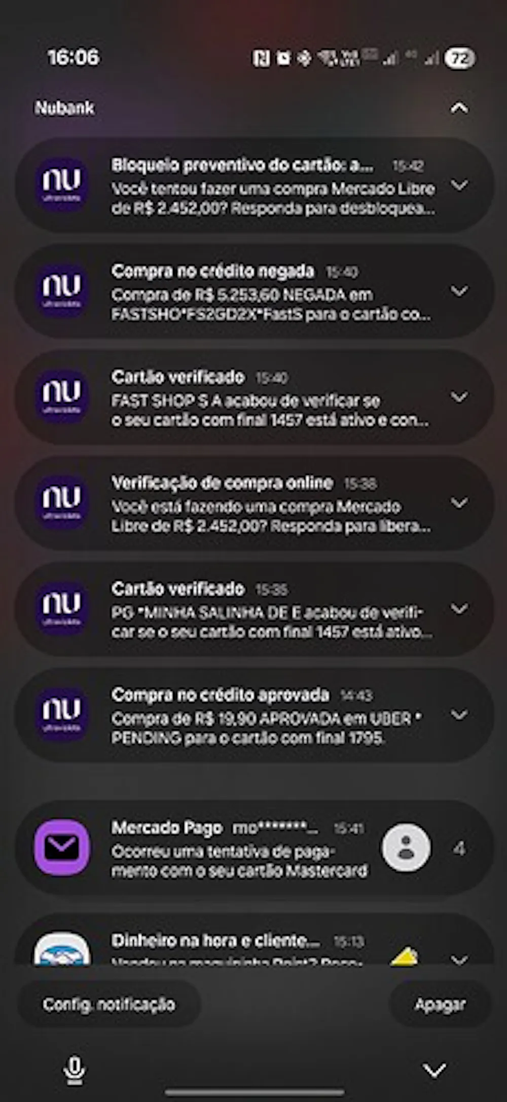 Sim, clonaram meu cartão e estavam testando para fazer a festa, mas não contavam com a Segurança do Nubank.