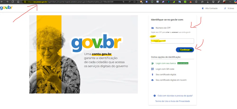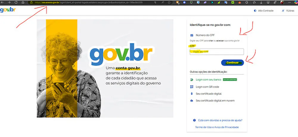 Ao entrar no site gov em que você acessou, veja se o endereço (conforme a imagem abaixo) está escrito da seguinte forma: “sso.acesso.gov.br/login”.