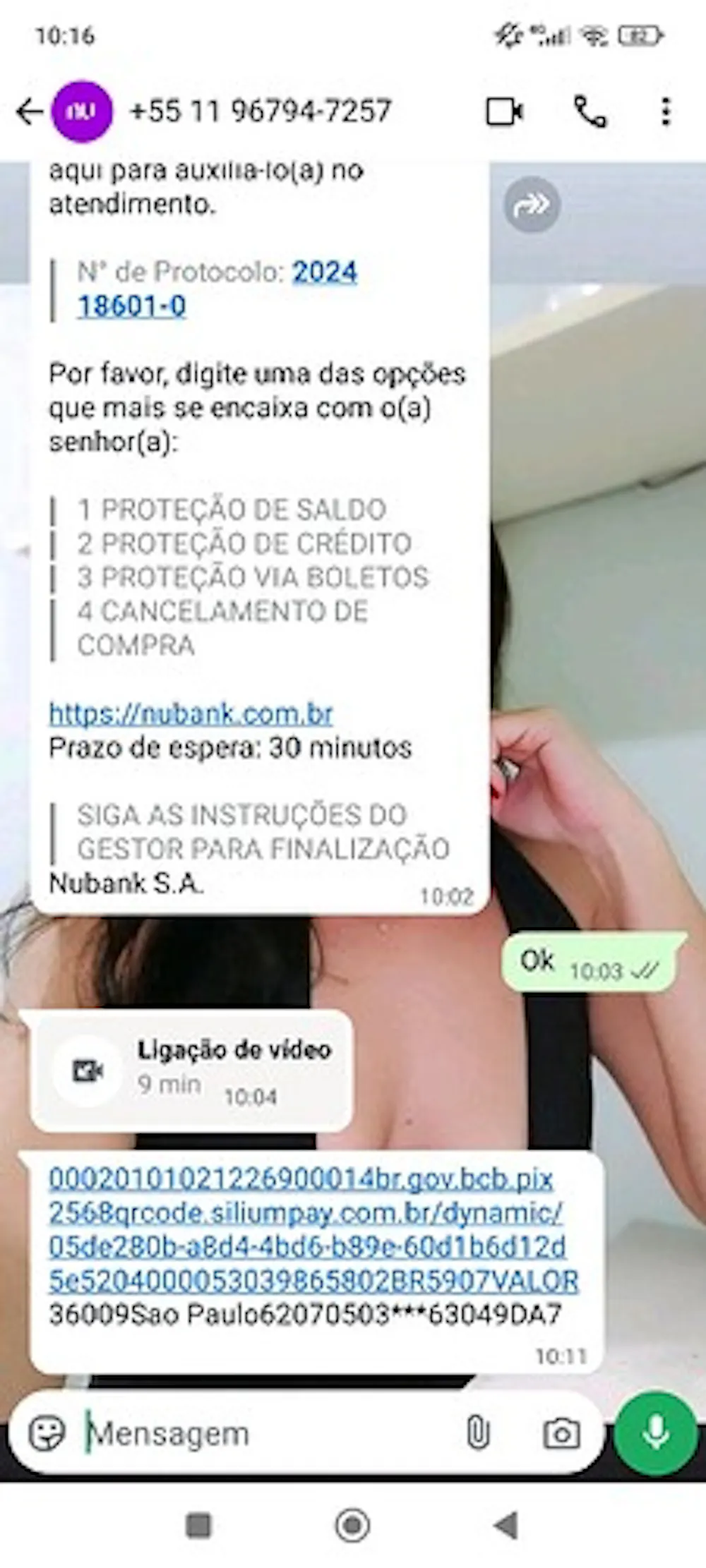 Me ligaram falando com suspeita de compra acima de mil reais da nubank, pelo mercado livre, pedindo pra aceitar chamada de vídeo no whatsapp e compartilhar tela, confirmar conta nubank e etc. Um app que tem opção da digital pra entrar, deveria ter opção de proteção com isso.
