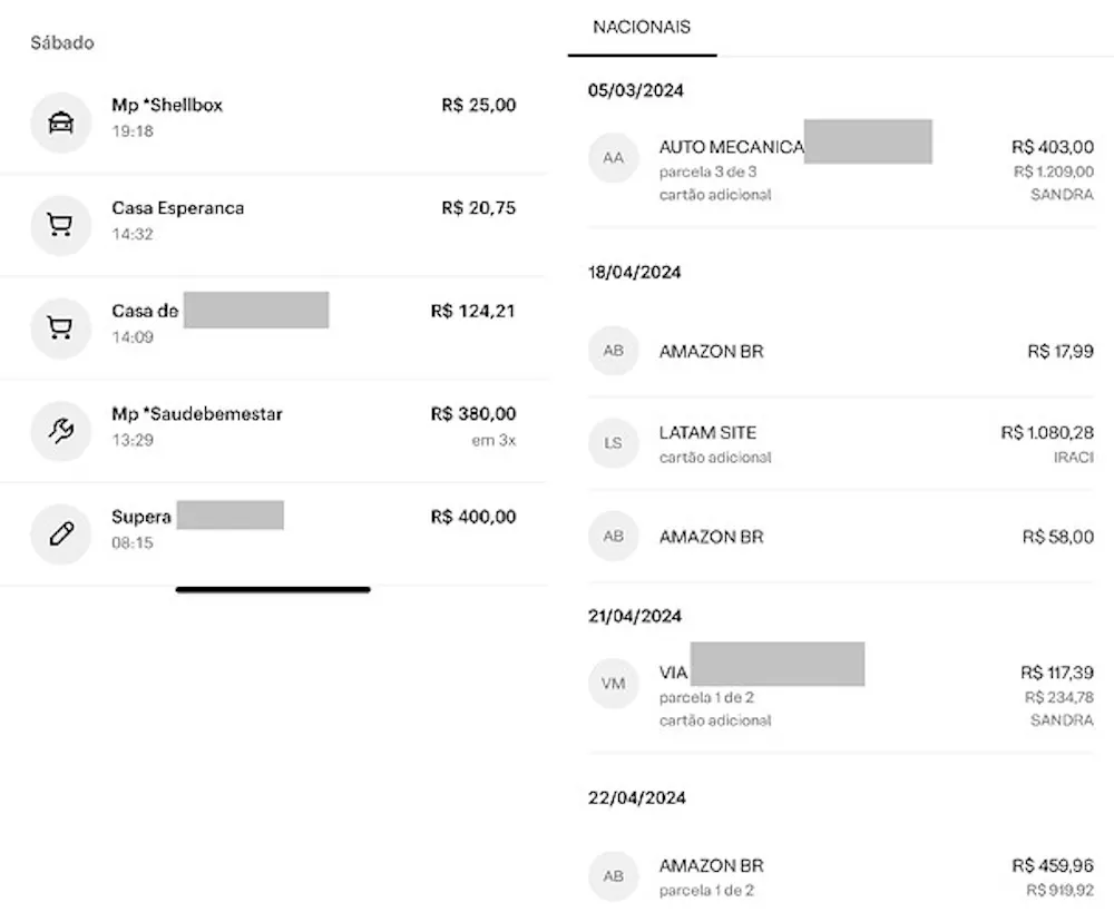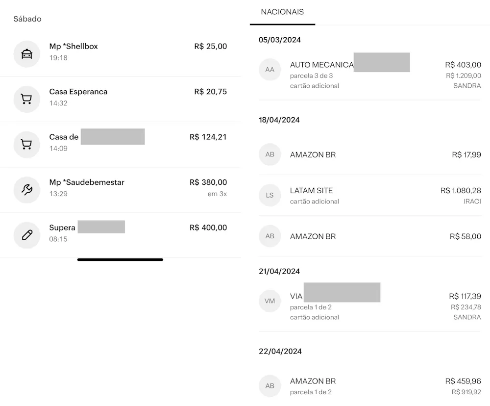 O do Nubank é muito ruim viu, carece de informações básicas e essenciais para organização e clareza ao cliente como constar ali nesta página informações de qual cartão foi usado naquela compra específica, o número da parcela atual daquela compra, nome do dono do cartão adicional, e para cartões virtuais seria legal tbm aparecer o nome desse cartão e ícone que demonstre que foi usado um cartão virtual ou temporário por ali mesmo, tudo nesta página sem nos abrigar a tocar em cada compra e ter q abrir outra página só pra consultar estas informações