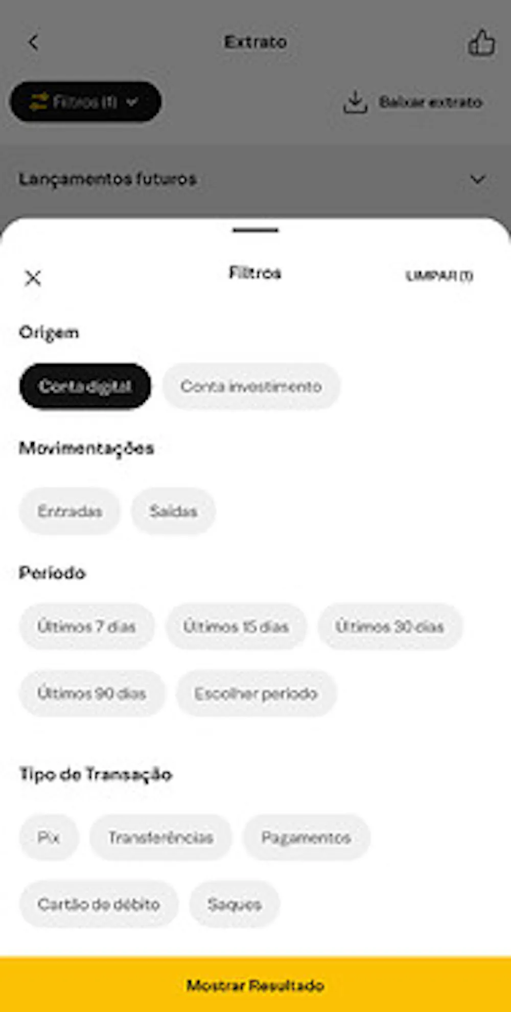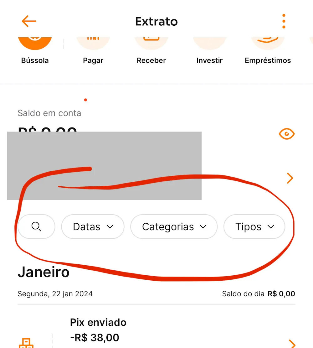 Em pleno 2024 não ter função de filtrar para fazer busca no histórico de transações do app do Nubank é desanimador. Então gostaria de sugerir a inclusão dessa ferramenta para a área de extrato da conta incluindo filtros para definirmos data, tipo de movimentações/transações e categorias.