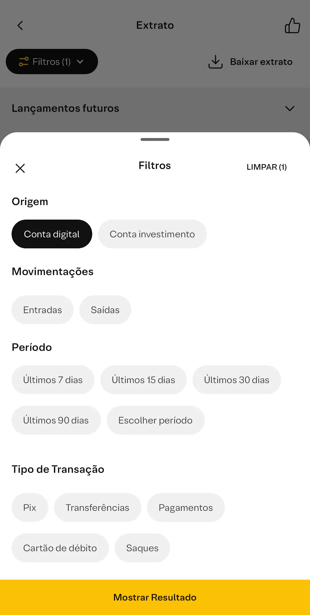 Para a página de cartões também seria legal ter opção de filtro para buscar transações por tipo de cartões, incluindo ali as transações dos cartões adicionais também sem separar em outro local do app.