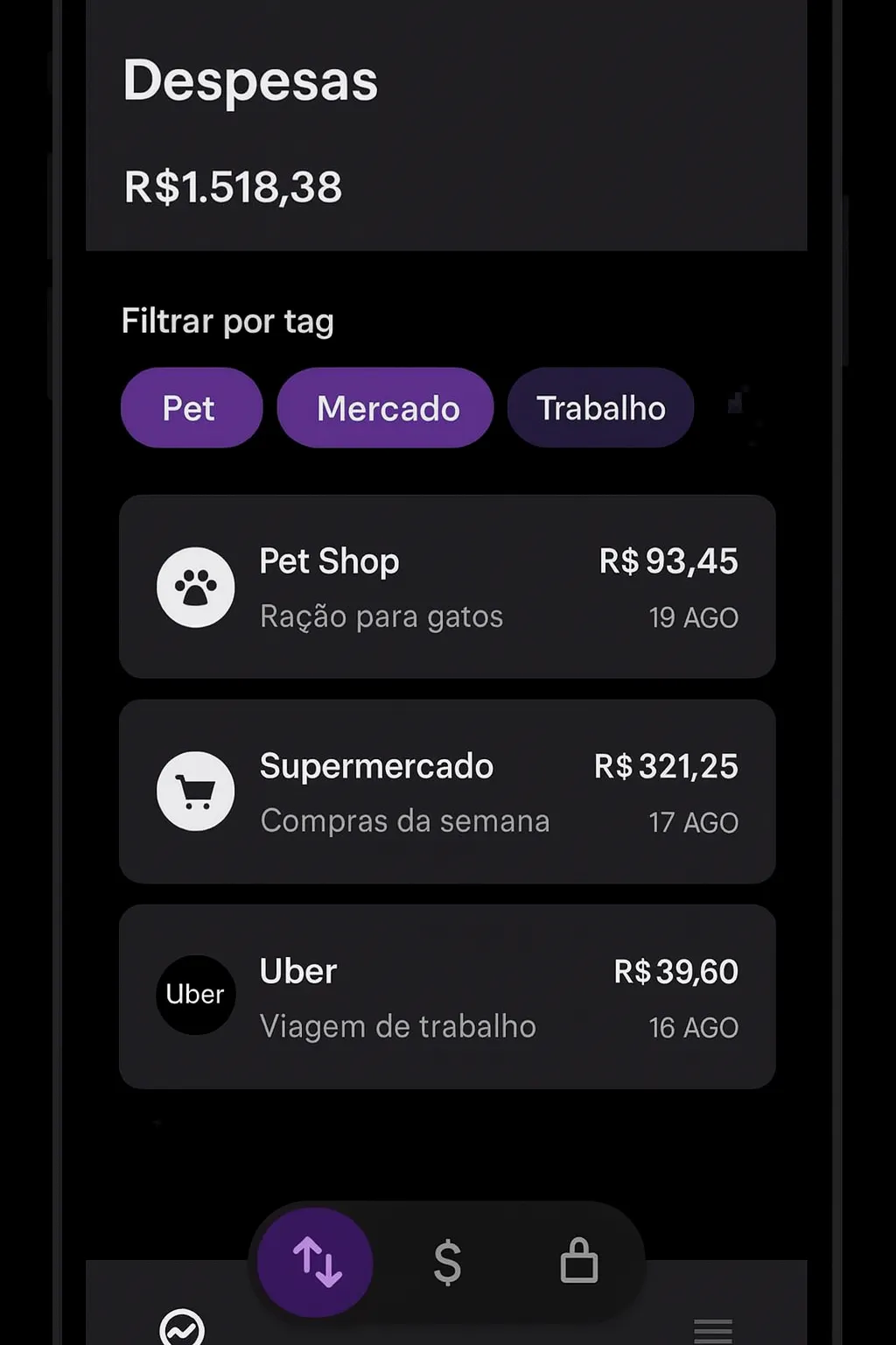Permitir atribuir tags às transações e filtrar despesas por essas tags no extrato e na fatura.