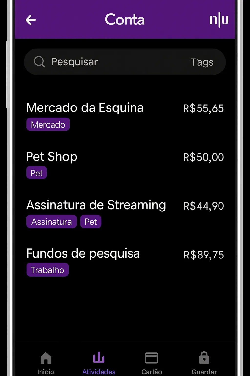 Hoje é possível adicionar tags aos cartões, mas não é possível filtrar ou analisar despesas por tag, o que limita a organização financeira.