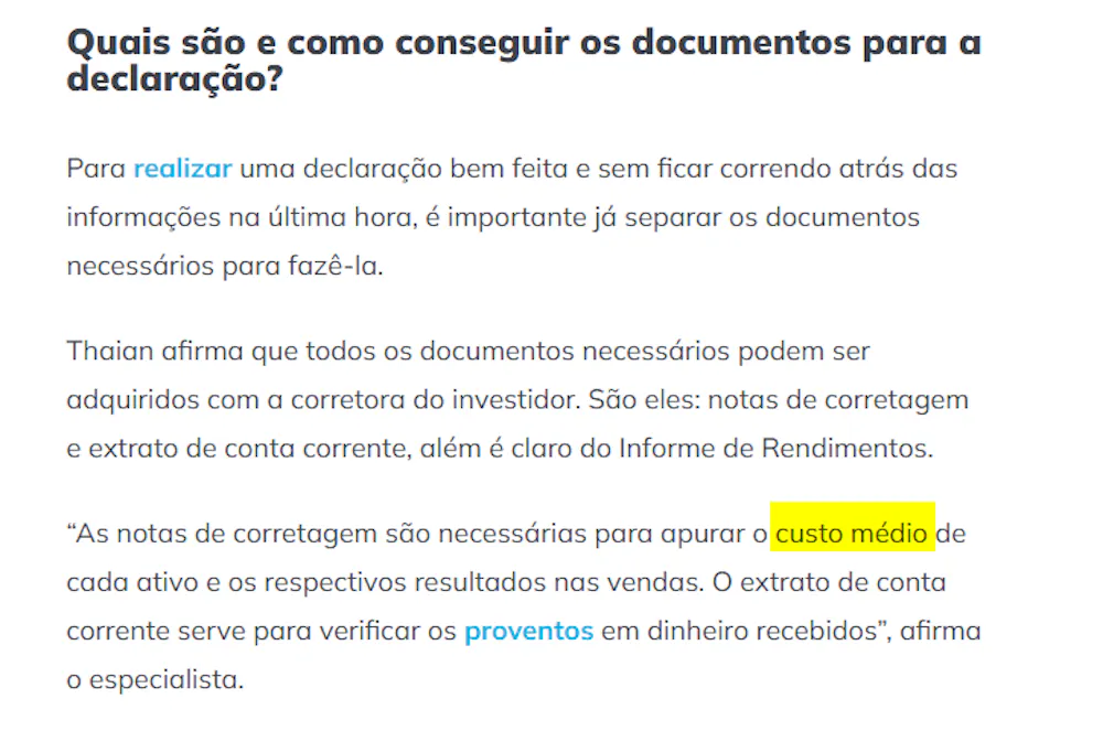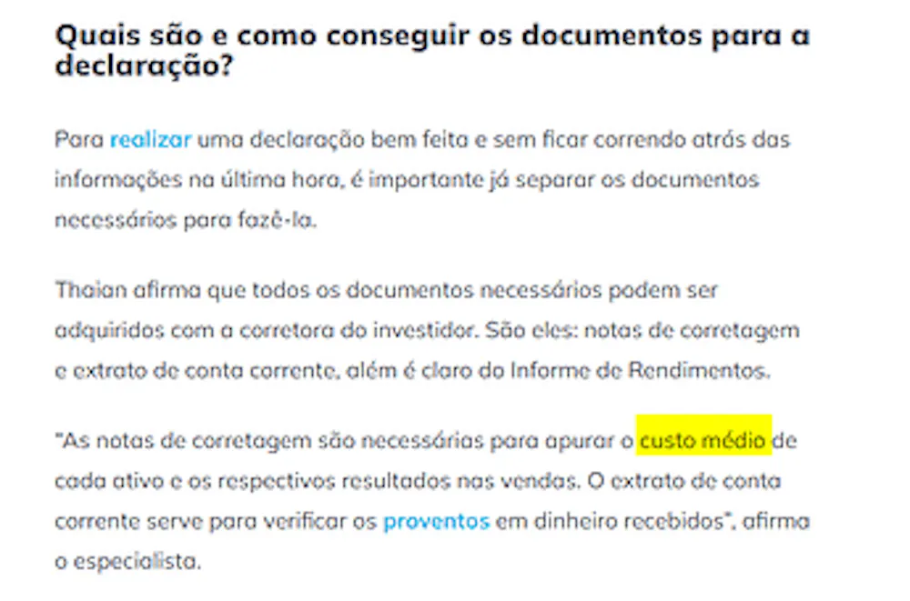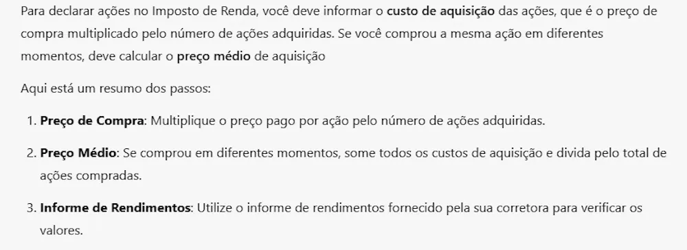Em resumo: acrescentar o preço médio de aquisição das ações.