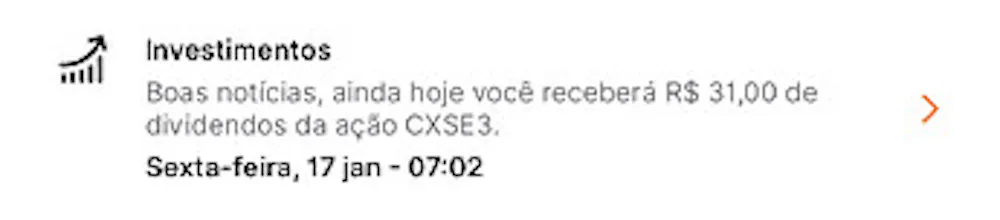 Primeiro com relação a proventos. Apesar do app avisar quando algum ativo nos paga, está notificação vem desse jeito, falando que está disponível, mas sem dizer quanto recebemos