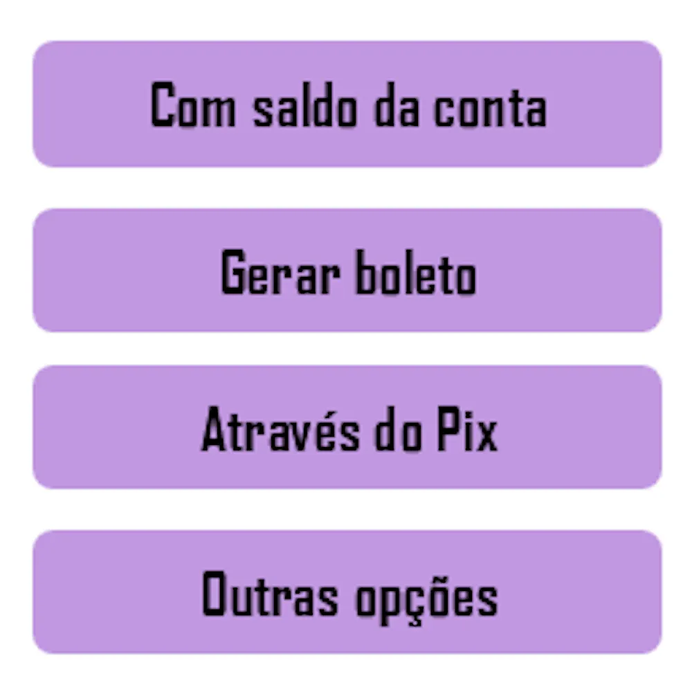Ao clicar em algumas dessas opções, seria necessário ao cliente somente digitar o valor e o mesmo seria descontado automaticamente para o pagamento instantâneo da fatura. Ainda que tenha opções que demandem um certo tempo de processamento, a fatura seria paga de imediato, pois o valor já estaria assegurando pelo banco, visto que o cliente autorizou ao informar sua senha.