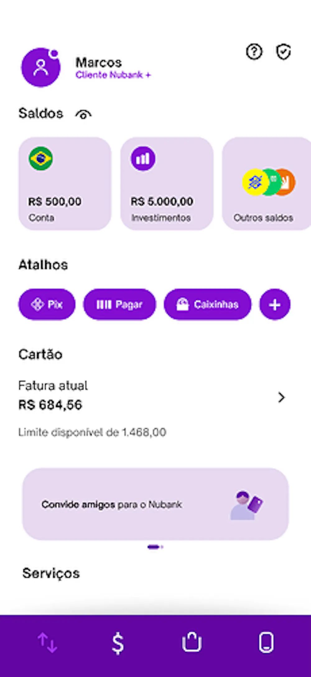 Parte 1: Tela inicial Cliente Nubank +