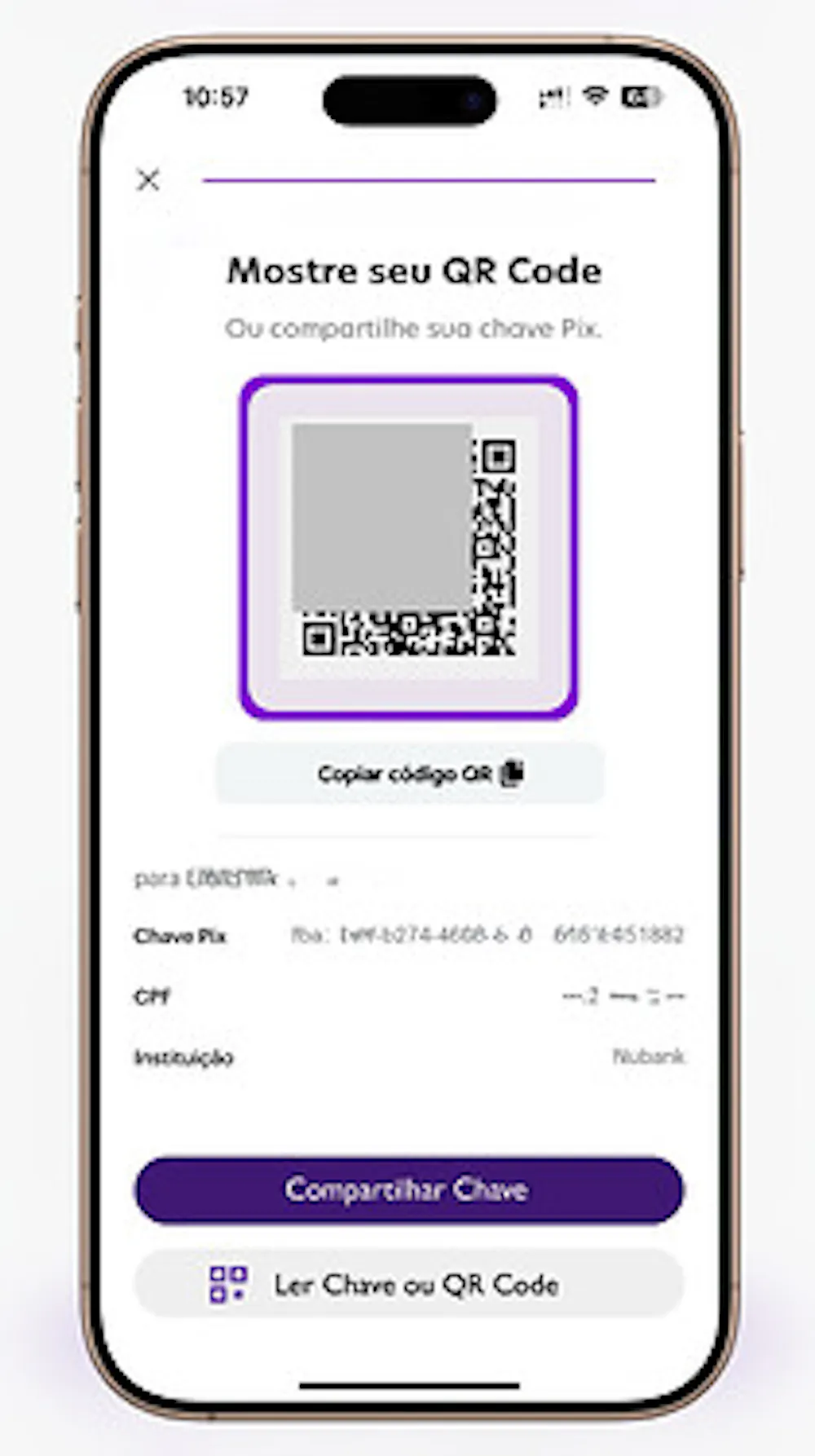 Sem contar um novo botão com ícone de QR Code que levaria a uma nova tela totalmente nova com funcionalidades para facilitar o recebimento de valores, compartilhar/copiar chave pix e fazer pagamentos rapidamente por QR Code.