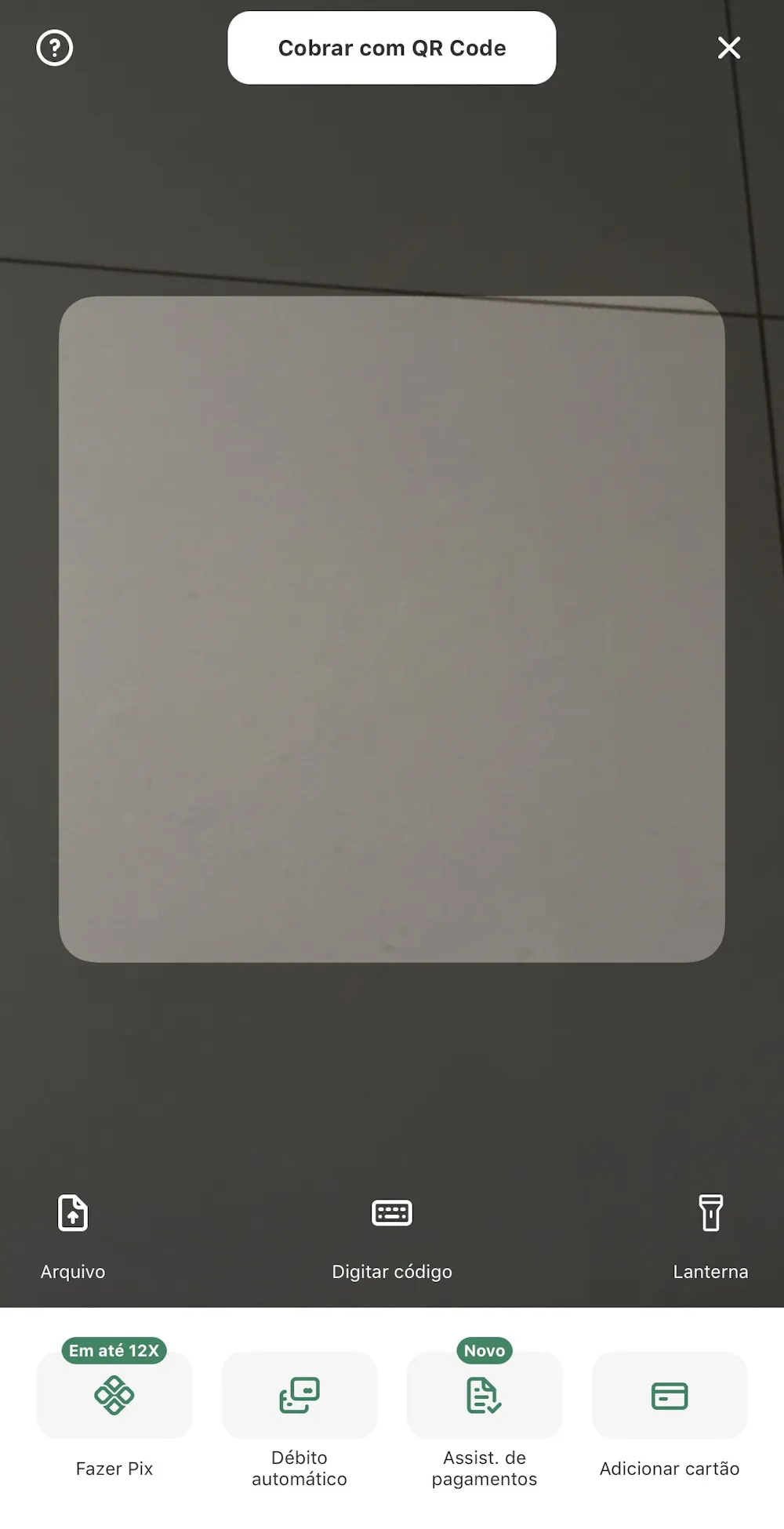 Ao tocar neste botão abre uma tela para o cliente já escanear um QR Code, ou código de barras pra já fazer o pagamento de forma mais prática e rápido. Daria até pra liberar função de reconhecer chaves pix escritas de telefones e e-mails ou outros por exemplo. Além disso nesta página tbm tem função digitar o código de barras se quiser, fazer upload de boletos ou QR Code de pagamentos em PDF ou em IMAGENS que o Nubank ainda não tem estas funções. Botões para o cliente já acessar a área de débito automático ou colocar conta em débito, o assistente de pagamentos, botão para eu mostrar meu QR Code e receber de alguém.