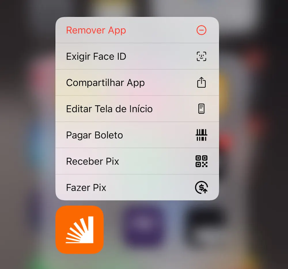 Seria ótimo se o Nubank liberasse atalhos rápidos de algumas área do app apenas com o cliente segurando em cima do ícone do app como banco inter permite. Antes mesmo de abri-lo .