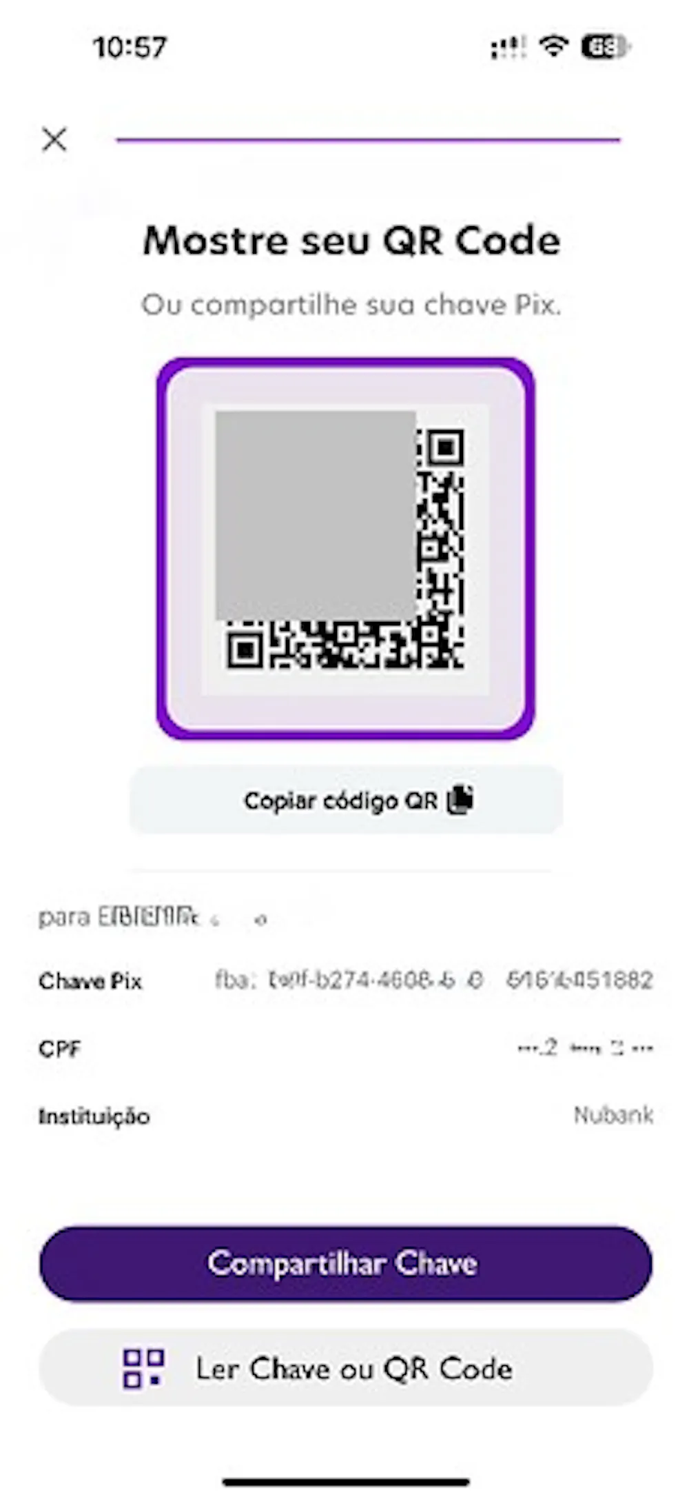 botão para copiar a chave pix do QR Code