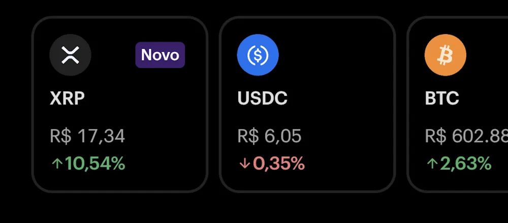O Nubank está aplicando uma mudança na área de criptos que eu gostei. Este pequenos cards mostrando o desempenho de algumas moedas