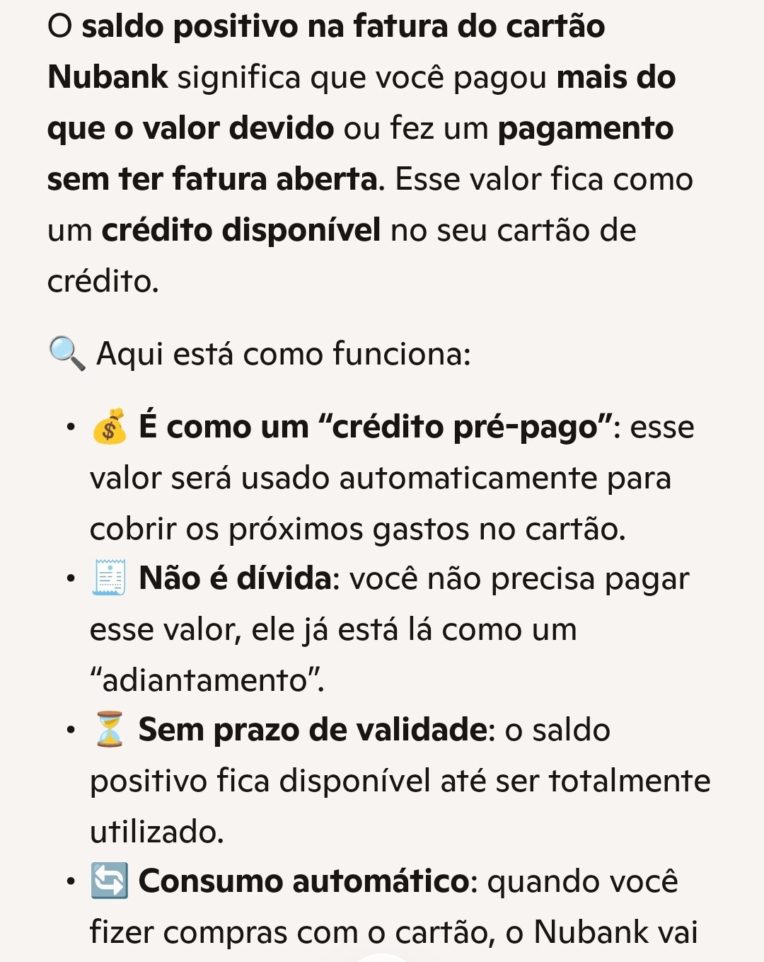 As vezes pago a fatura com um valor maior. Daí fico com esse saldo positivo.