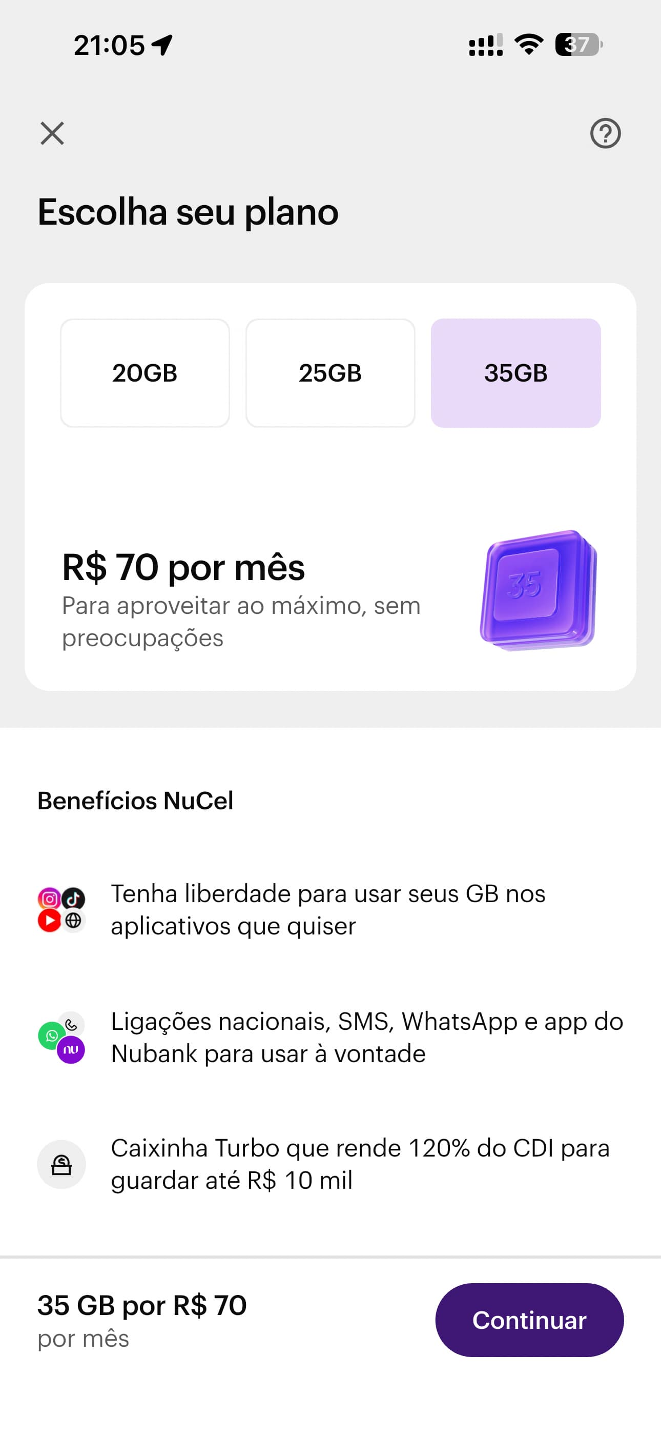 Notei no aplicativo que agora está disponível o NuCel, com planos a partir de R$ 45,00. Gostaria de sugerir a criação de uma opção mais acessível:
