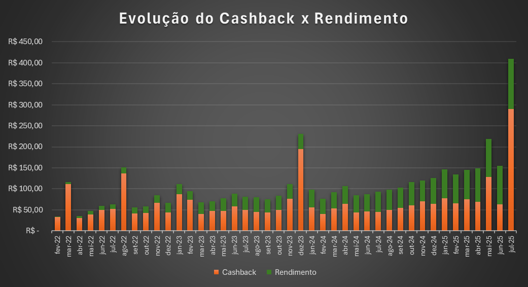 Aliás, Julho foi o primeiro mês com mais rendimento que cashback, isso é lindo