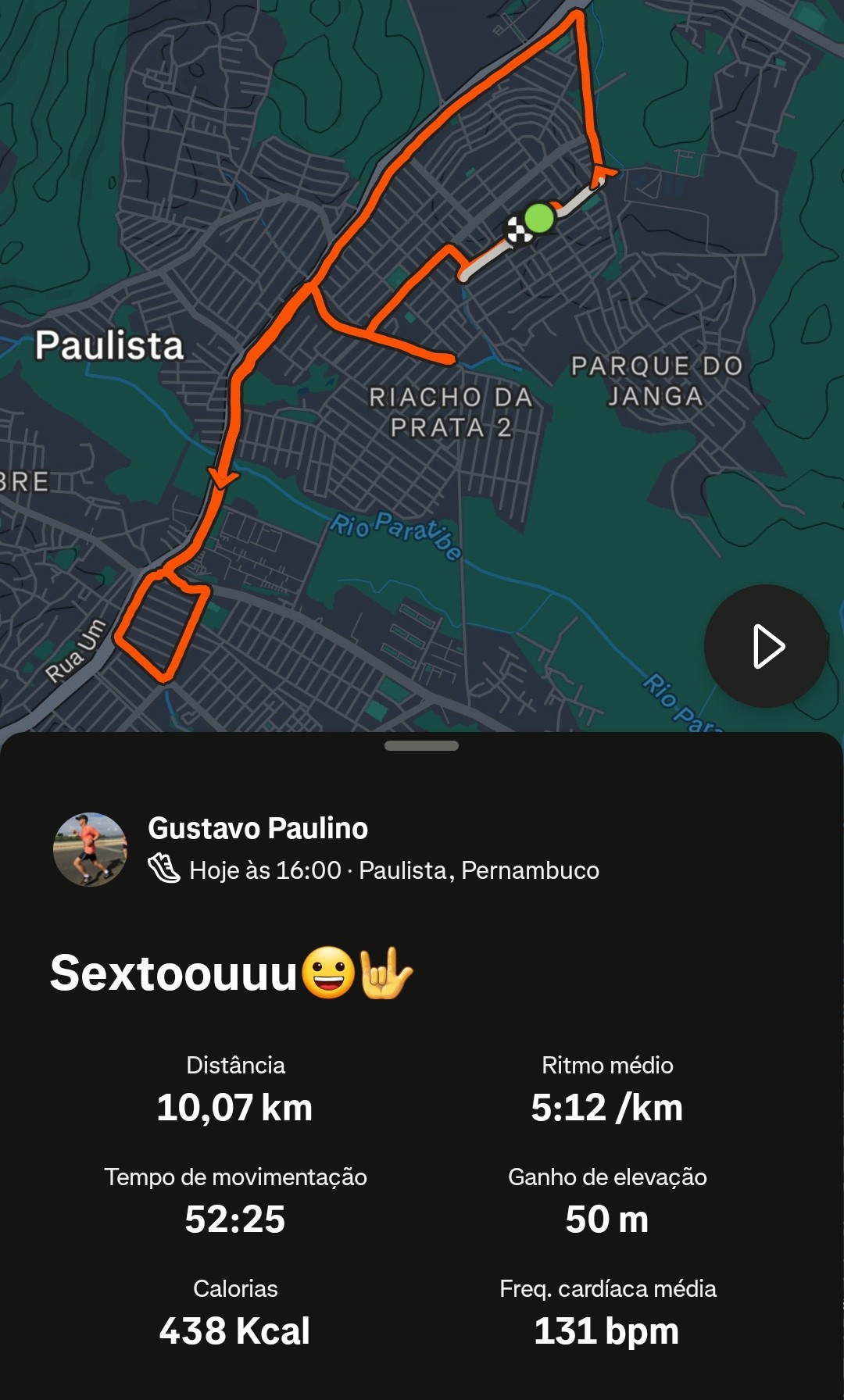 Esses dias não estou conseguindo treinar, mas hoje eu vou sim! Ontem fiz um deslocamento e aproveitei para dá uma corridinha! ![]()