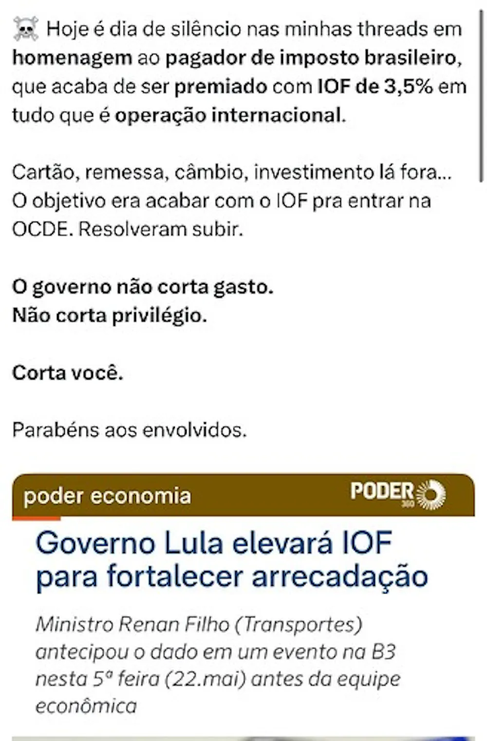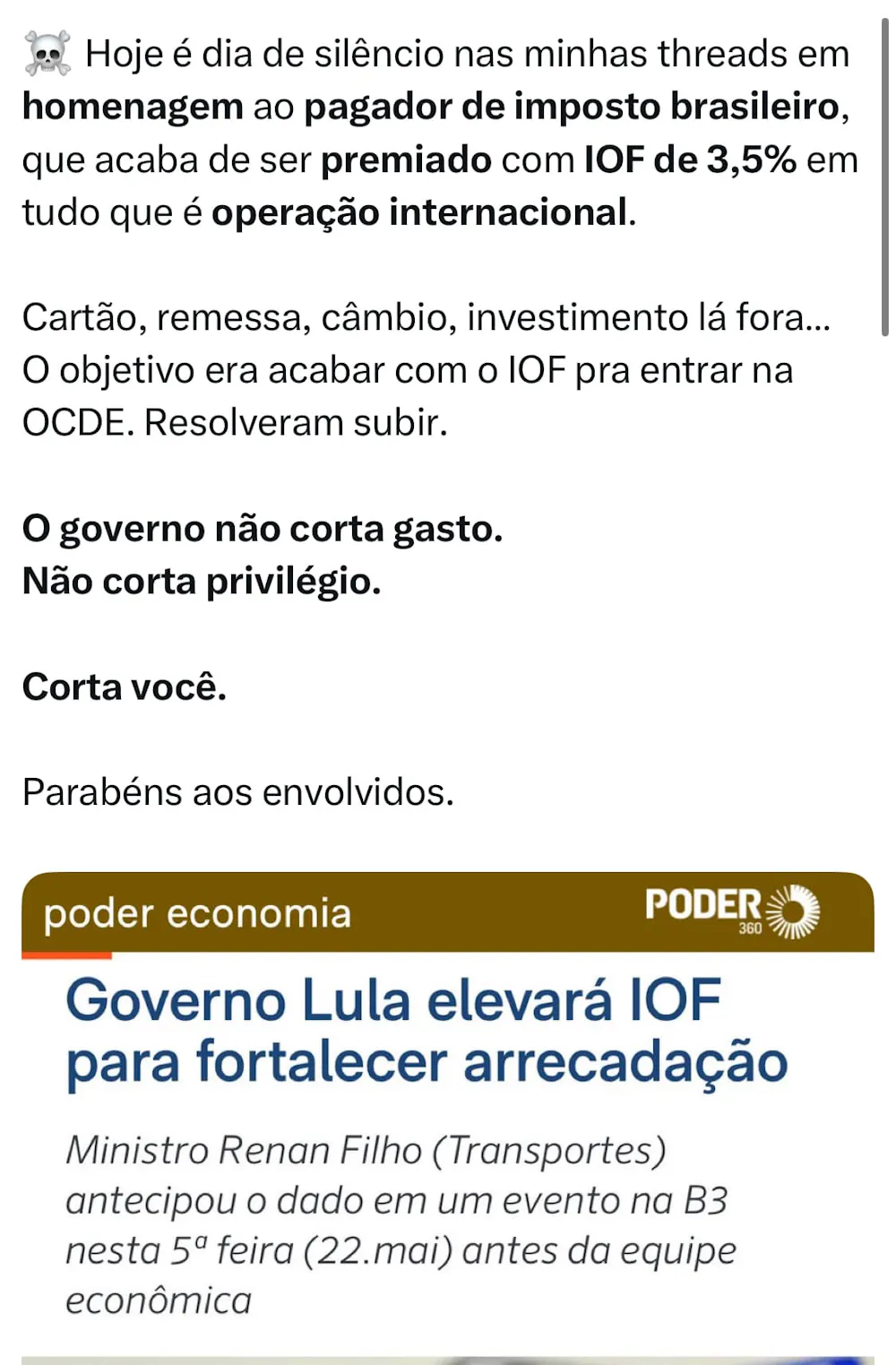 Já vai começar a valer a partir de amanhã dia 23 de Maio, com novo IOF de 3,5%