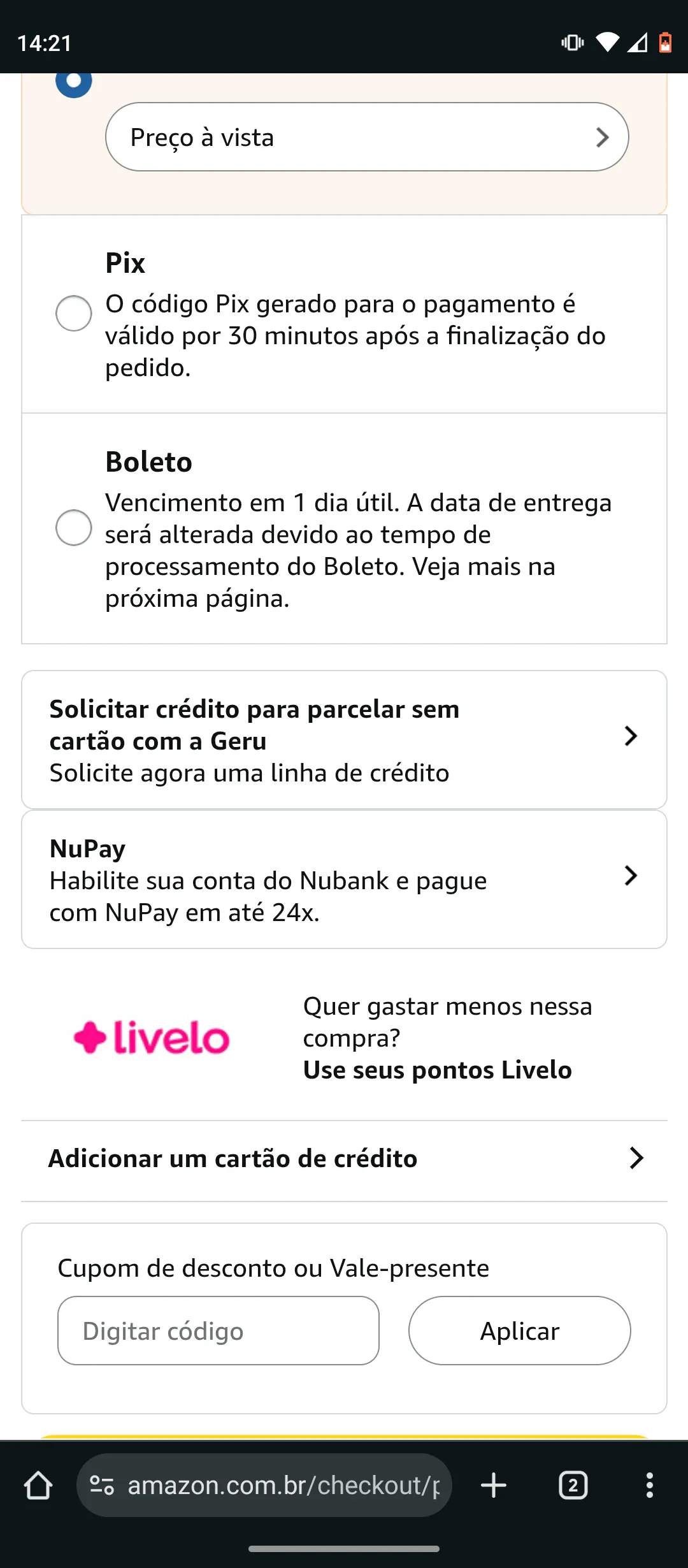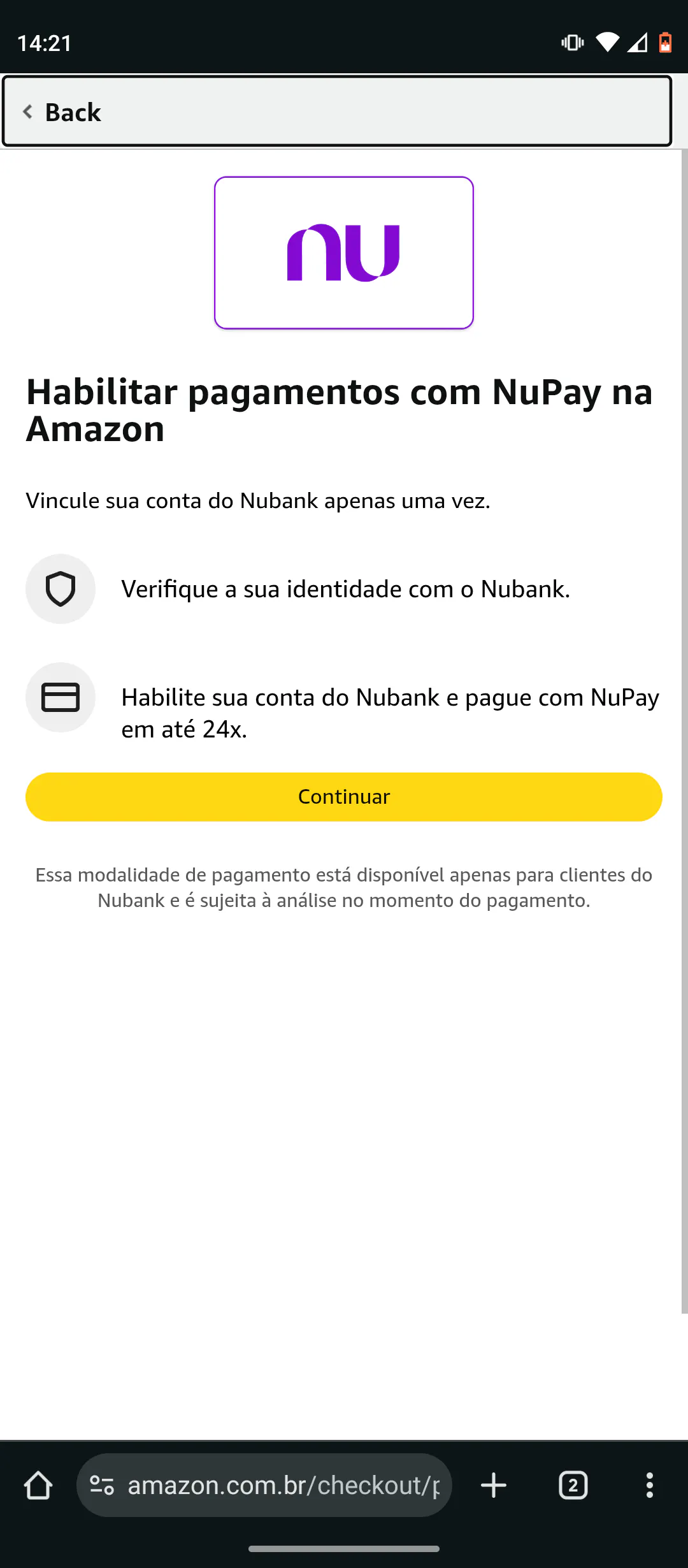 O nupay já tá sendo liberado para compras na Amazon. Fui fazer uma compra aparece opção de pagamento com nupay. pede o código via sms, mais demora muito a chegar tanto que eu finalizei compra depois de 5min o SMS com código chegou. Só consegui finalizar pq acessei o app do nubank lá tinha código reserva para confirmar o pagamento