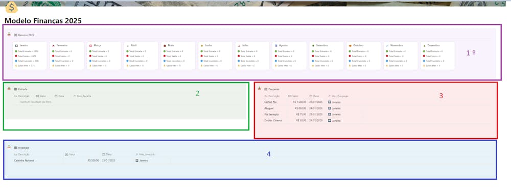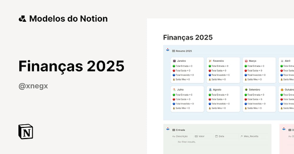 Pensando nisso, criei um controle de finanças simples no Notion, focado em acompanhar entradas e saídas de forma prática e direta, ajudando a ter uma visão clara da vida financeira sem precisar de fórmulas ou configurações complexas.