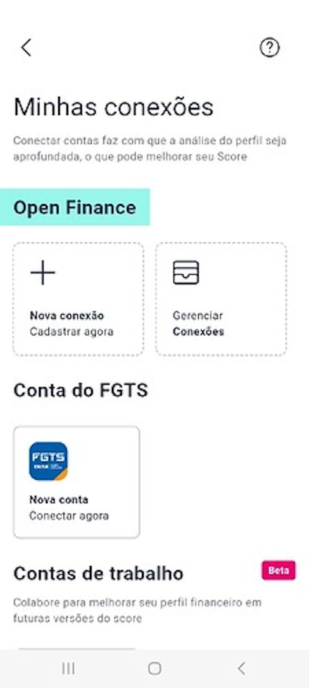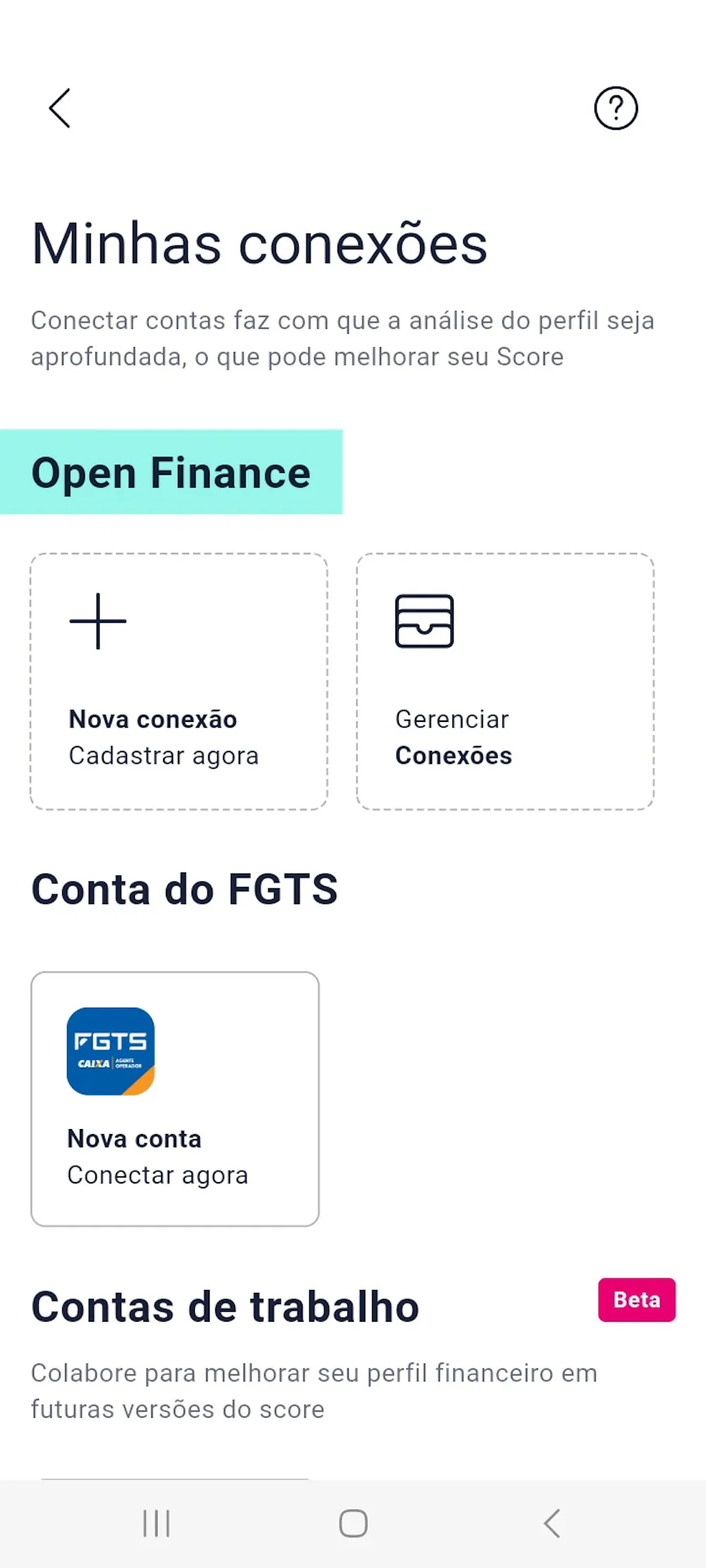 Fui novamente na Conexão Bancária do aplicativo da Serasa para verificar se houve alguma mudança que me fizesse voltar atrás e repensar. E houve!