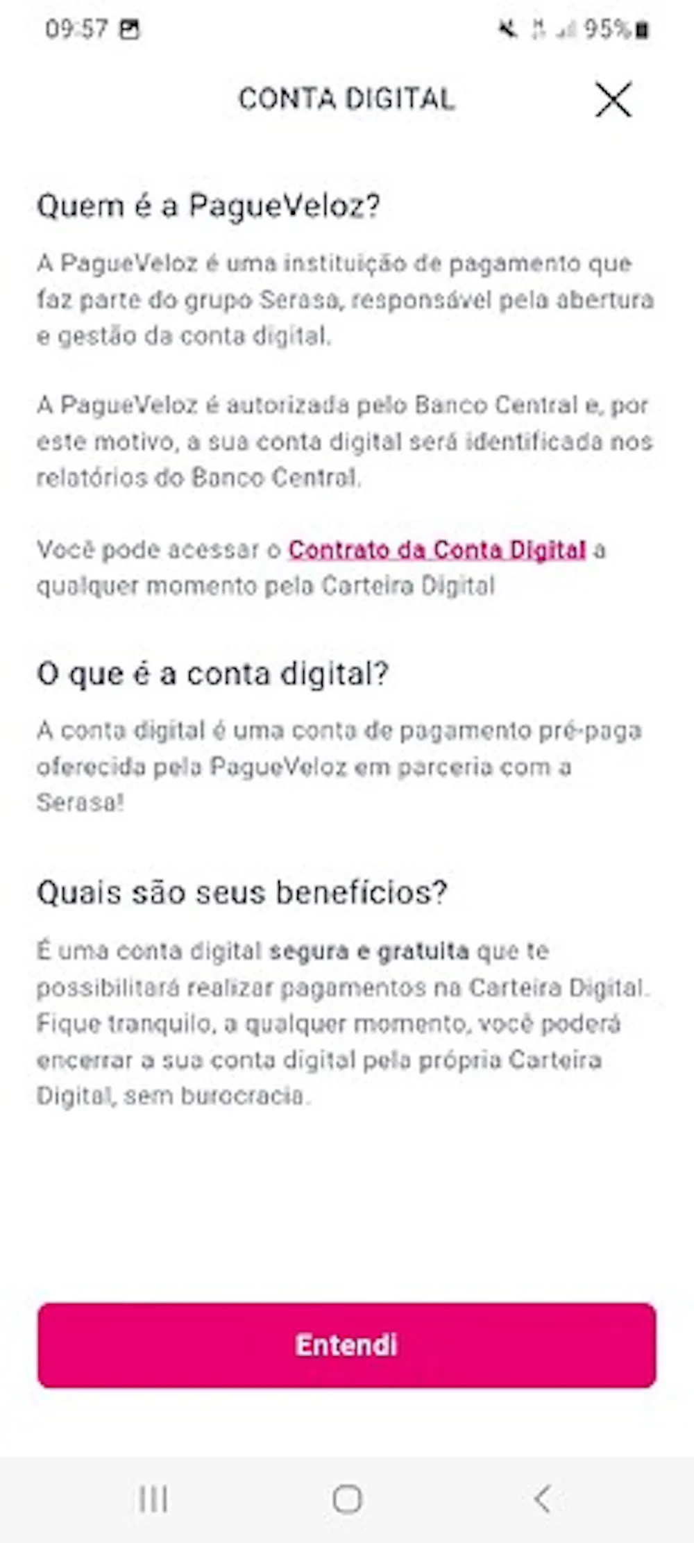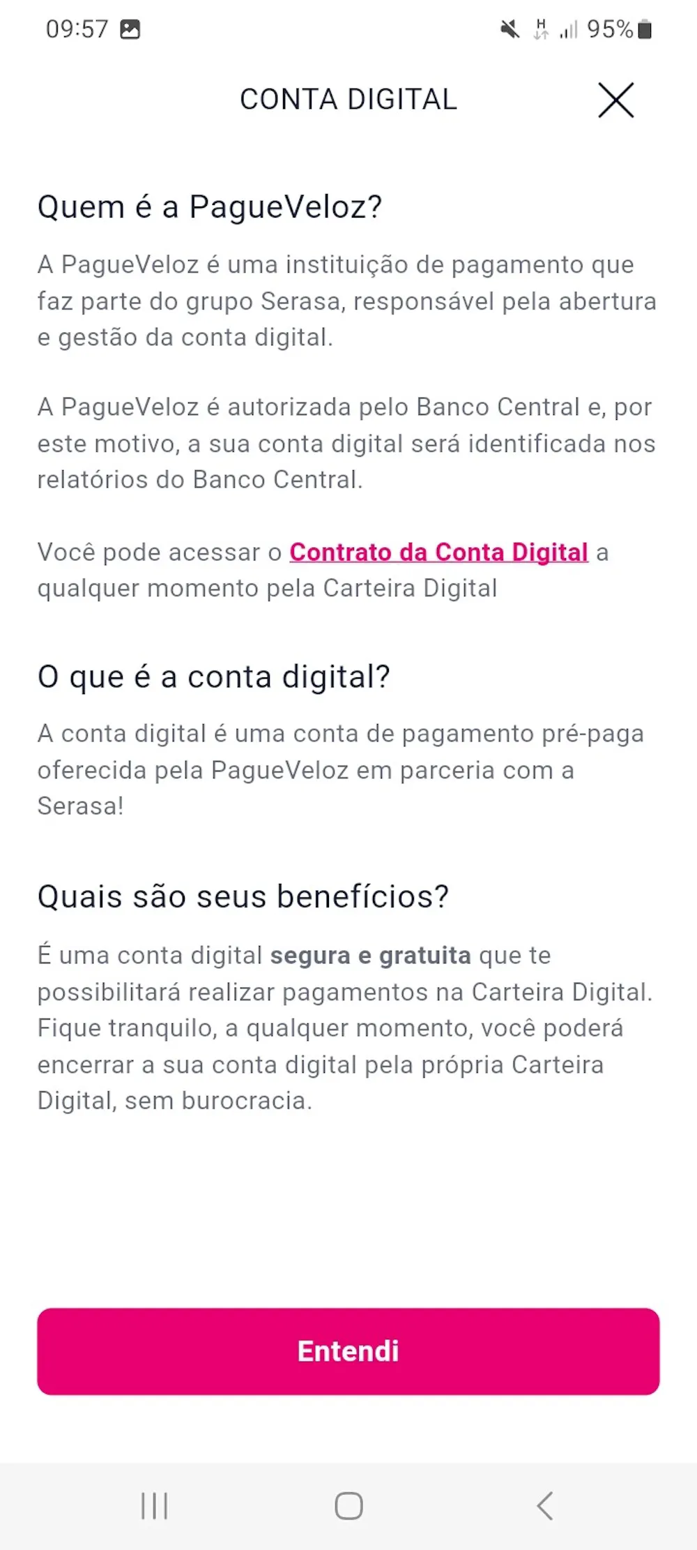 Parece que agora a Serasa aderiu ao Open Banking, apesar dela mesma não ser uma instituição financeira autorizada para o serviço. Pelo que entendi, o Grupo Serasa criou (ou apenas fez parceria?) uma nova empresa chamada PagueVeloz, que é uma instituição de pagamentos autorizada pelo Banco Central. No aplicativo Serasa foi criado uma aba chamada Carteira Digital, onde, ao aceitarmos os Termos de Abertura, nossas informações são enviadas para esta tal de PagueVeloz, que realiza uma abertura de conta em nosso nome.